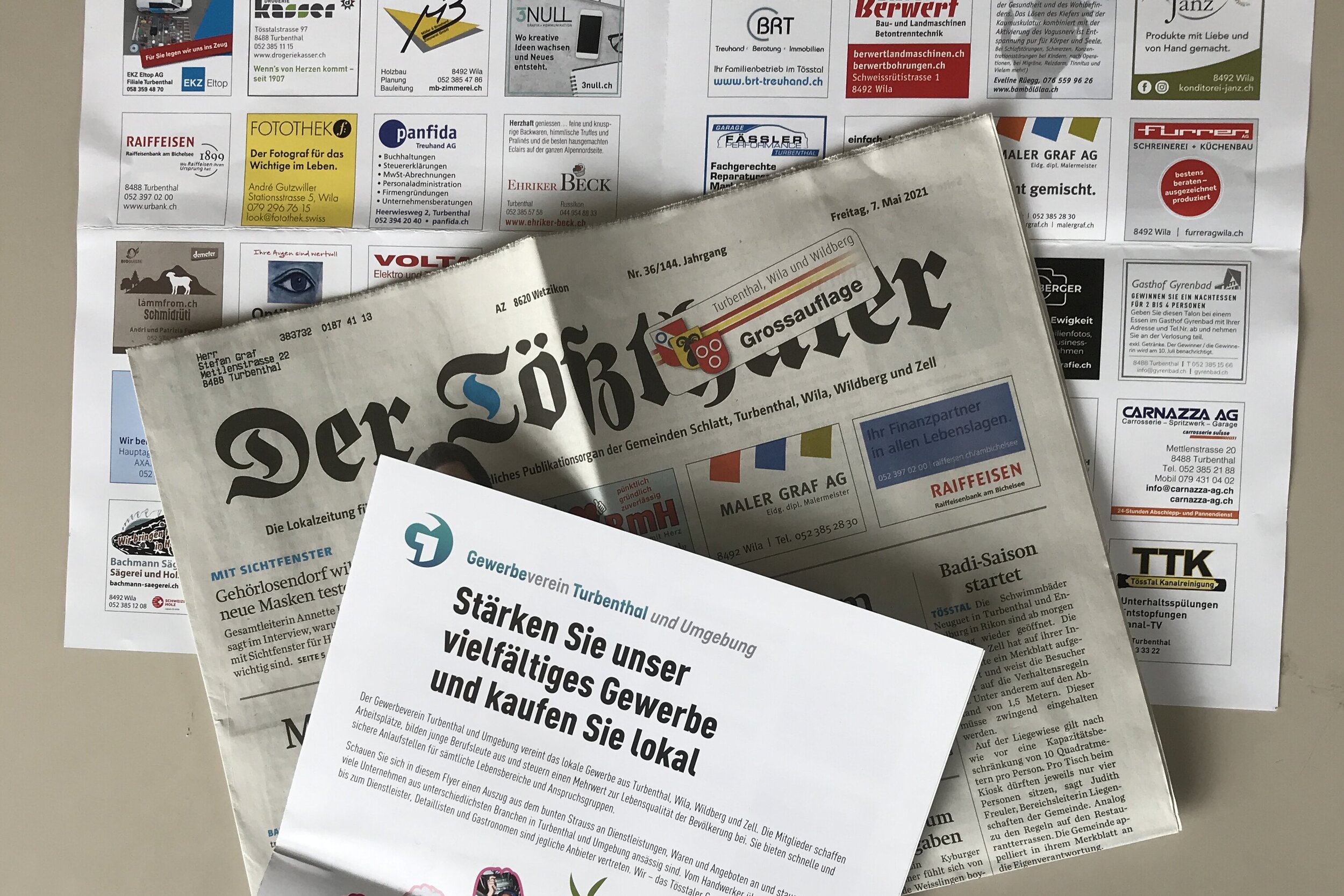 Weiterlesen ...Der Gewerbeverein Turbenthal hat einen farbenfrohen Flyer gestaltet, welcher mit der Grossauflage des Tössthalers in Turbenthal, Wila und Wildberg verschickt wurde. Ein grosser Teile der Gewerbeverein-Mitglieder hat das Angebot angenommen und zeigt sich mit einem kleinen Inserat in diesem Beiblatt.…